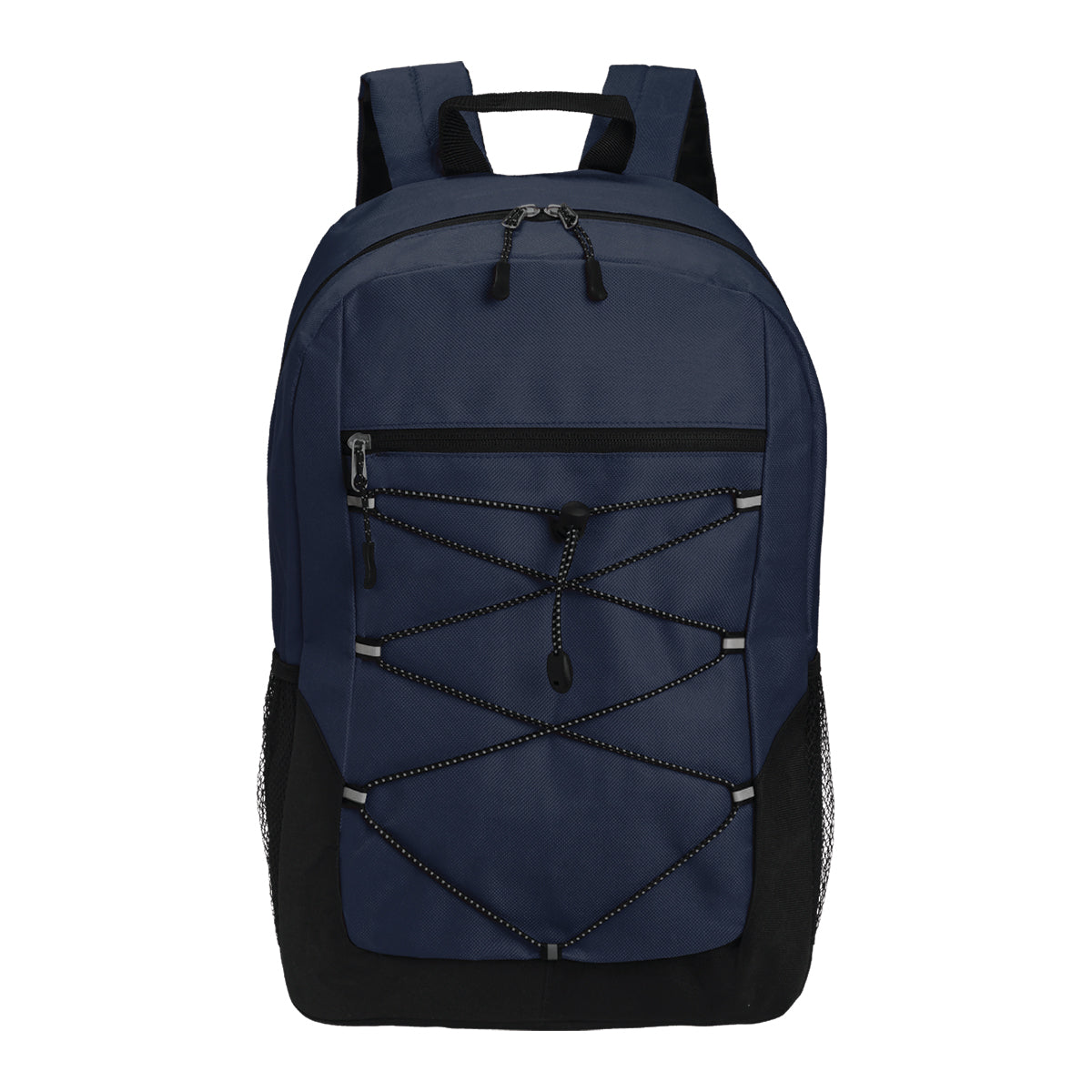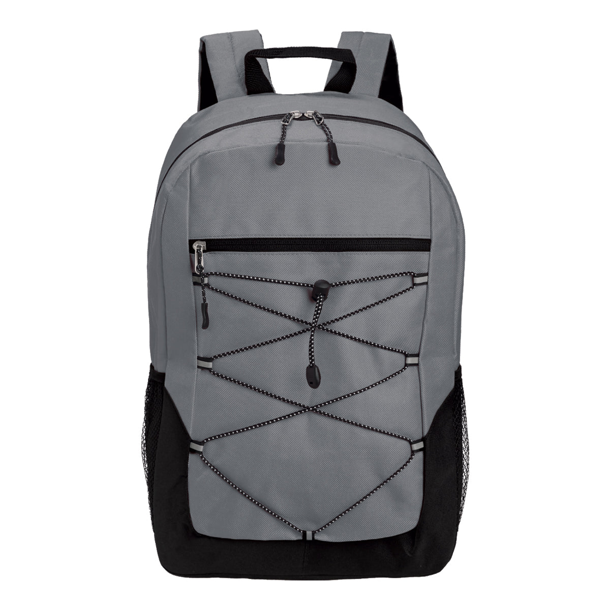 The Lendros Backpack is manufactured from durable 600 Denier and Polyester material, featuring a main, double zippered compartment, a front zippered compartment with elastic bungee for external storage space as well as 2 additional mesh and polyester side pockets. The bag offers multiple carrying options including a top carry handle and adjustable shoulder straps.